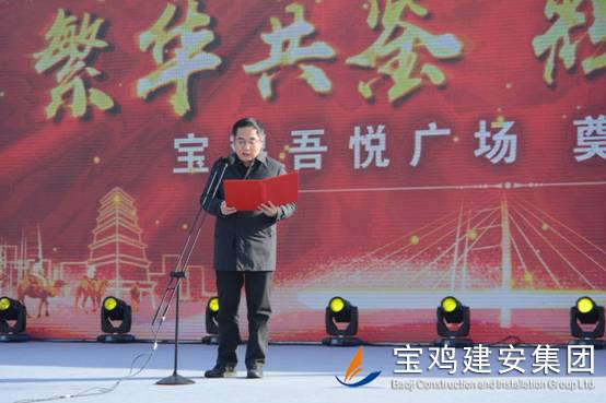 2018年1月16日上午,寶雞新城吾悅廣場項目奠基儀式在高新區(qū)舉行,該項目是繼恒大、碧桂園之后,寶雞高新區(qū)引進的又一個千億級商業(yè)航母——新城控股集團在西北地區(qū)建設(shè)的第二個一站式綜合廣場。奠基儀式上,公司董事長景常榮代表施工單位致辭,新城控股集團副總裁陸建華代表建設(shè)單位致辭,高新區(qū)黨工委書記、管委會主任郝晉升代表政府單位致辭。高新區(qū)管委會領(lǐng)導(dǎo)、新城控股集團領(lǐng)導(dǎo)、寶雞建安集團董事長、寶雞市中小企業(yè)協(xié)會領(lǐng)導(dǎo)等為項目培土奠基。公司組織管理人員、施工人員共計300人參加了奠基儀式。