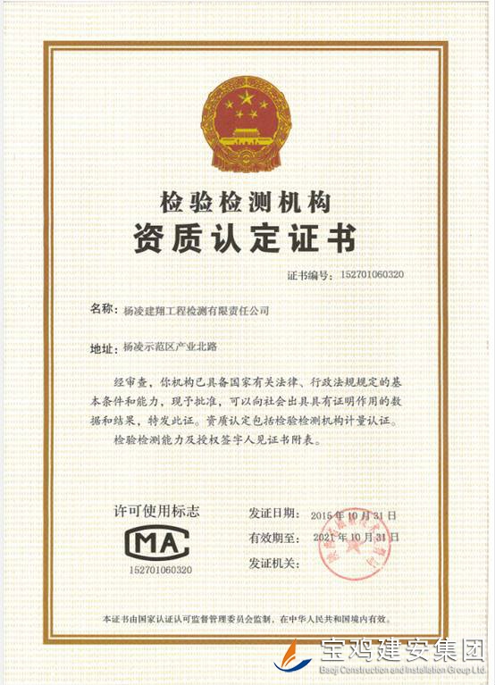 楊凌建翔工程檢測(cè)有限責(zé)任有限公司,由陜西省楊凌示范區(qū)規(guī)劃建設(shè)局批準(zhǔn),于2012年12月在陜西省楊凌示范區(qū)工商行政管理局注冊(cè)成立的股份制企業(yè),具有獨(dú)立法人資格的檢測(cè)機(jī)構(gòu)。并于2015年1月通過陜西省質(zhì)量技術(shù)監(jiān)督局的認(rèn)評(píng)取得計(jì)量認(rèn)證證書。本公司主要從事工業(yè)與民用建筑工程各項(xiàng)試驗(yàn)檢測(cè)業(yè)務(wù)。