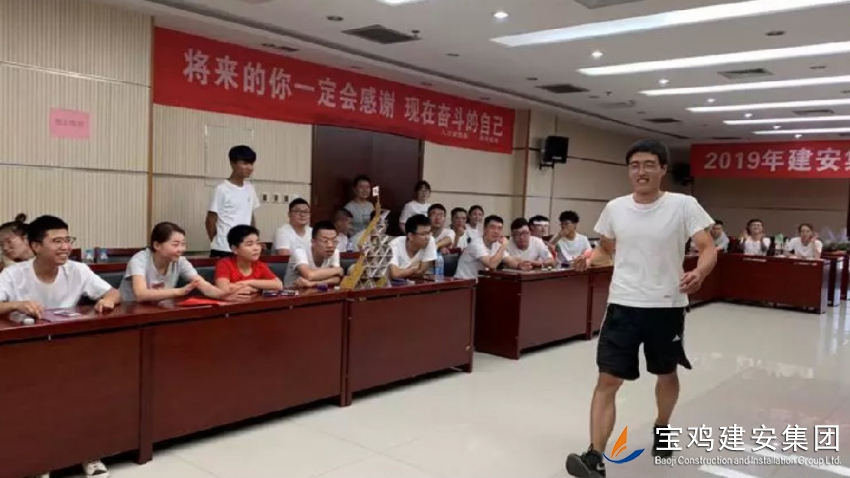 2019年7月21日,寶雞建安集團(tuán)股份有限公司在建安大廈22樓第三會(huì)議室開始了新員工入職培訓(xùn)。本次培訓(xùn)為期8天,內(nèi)容充實(shí),勞逸結(jié)合,使新員工由校園走向社會(huì),從學(xué)生走向職場(chǎng)人有了一個(gè)平穩(wěn)的過渡。