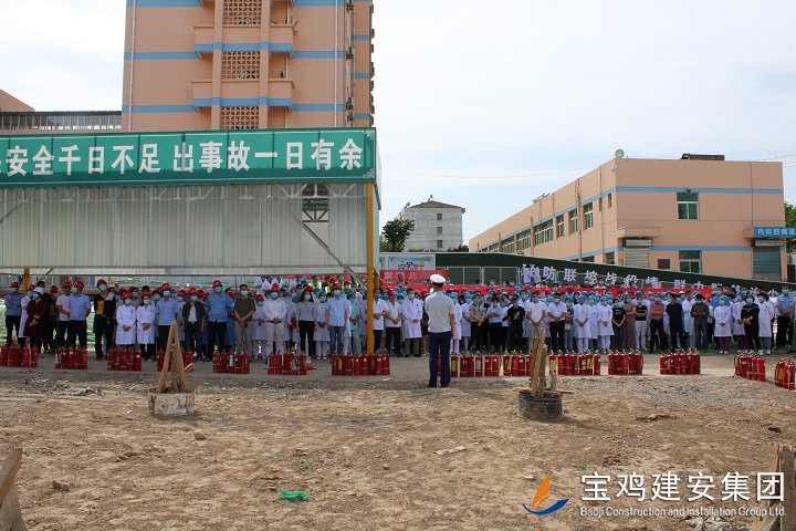 “火災(zāi)似猛虎,防患于未然”,在入夏火災(zāi)事故高發(fā)頻發(fā)期間,為了提高項目部員工的火災(zāi)防范意識,普及火災(zāi)常識,掌握火災(zāi)逃生自救知識和技能,有效預(yù)防各類火災(zāi)事故,進一步加強安全生產(chǎn)工作,認真落實“安全月”活動提出的各項工作任務(wù),202062日下午3點,寶雞建安集團第十三項目部聯(lián)合鳳翔縣醫(yī)院200多名醫(yī)護人員,在鳳翔縣消防大隊領(lǐng)導(dǎo)及公司安全部的指導(dǎo)下,成功開展了“鳳翔縣醫(yī)院3號住院樓工地消防實戰(zhàn)演練”,通過直觀、規(guī)范的火災(zāi)演練觀摩,使員工掌握了簡單的火災(zāi)預(yù)防常識和逃生自救能力。鳳翔縣建設(shè)工程質(zhì)量安全監(jiān)督站、中安監(jiān)理、鳳翔縣所有在建工程企業(yè)代表等近百余人觀摩了此次消防演練。