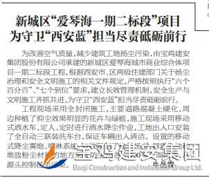 為改善空氣質(zhì)量,減少建筑工地?fù)P塵污染,由寶雞建安集團股份有限公司承建的新城區(qū)愛琴海城市商業(yè)綜合體項目一期二標(biāo)段工程,根據(jù)西安市、區(qū)兩級住建部門關(guān)于揚塵治理和安全文明施工的相關(guān)文件規(guī)定,嚴(yán)格按照執(zhí)行“六個百分百”、“七個到位”要求,建立長效管理機制,安全生產(chǎn)與文明施工齊抓共進,為守衛(wèi)“西安藍(lán)”擔(dān)當(dāng)盡責(zé)砥礪前行。
