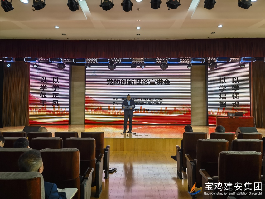 為認(rèn)真學(xué)習(xí)貫徹習(xí)近平新時(shí)代中國特色社會主義思想和黨的二十大精神,扎實(shí)深入推進(jìn)主題教育。11月28日下午,在寶雞建安集團(tuán)股份有限公司24樓多功能廳舉辦了一場“學(xué)習(xí)貫徹講話精神、著力推動(dòng)高質(zhì)量發(fā)展”黨的創(chuàng)新理論宣講會。本次宣講會由中共寶雞市住房和城鄉(xiāng)建設(shè)局黨組主辦,寶雞建安集團(tuán)股份有限公司黨委承辦,局機(jī)關(guān)和局屬27個(gè)企事業(yè)單位200多名黨員干部參加了宣講會。 寶雞建安集團(tuán)公司黨委副書記胥永寧在致詞中,感謝局黨組對寶雞建安集團(tuán)公司的信任和大力支持,介紹了公司經(jīng)營生產(chǎn)情況和黨建工作開展情況,并邀請局系統(tǒng)各兄弟單位蒞臨指導(dǎo),加強(qiáng)學(xué)習(xí)交流,共同拓展工作思路,促進(jìn)各項(xiàng)工作更上一層樓。