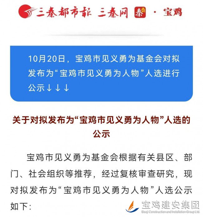 “見義勇為”人物公示,我司員工榜上有名